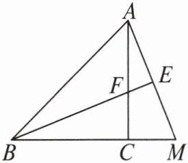 18. (8分)如图,在$Rt△ABC$中,$AC= BC,∠ACB= 90^{\circ }$,BF平分$∠ABC$交AC于点F,$AE⊥BF$于点E,AE,BC的延长线交于点M。