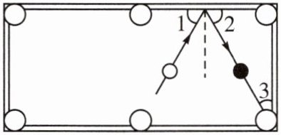 11. 如图,$∠3=30^{\circ }$,为了使白球反弹后能将黑球直接撞入袋中,那么击打白球时,必须保证$∠1$的度数为____。