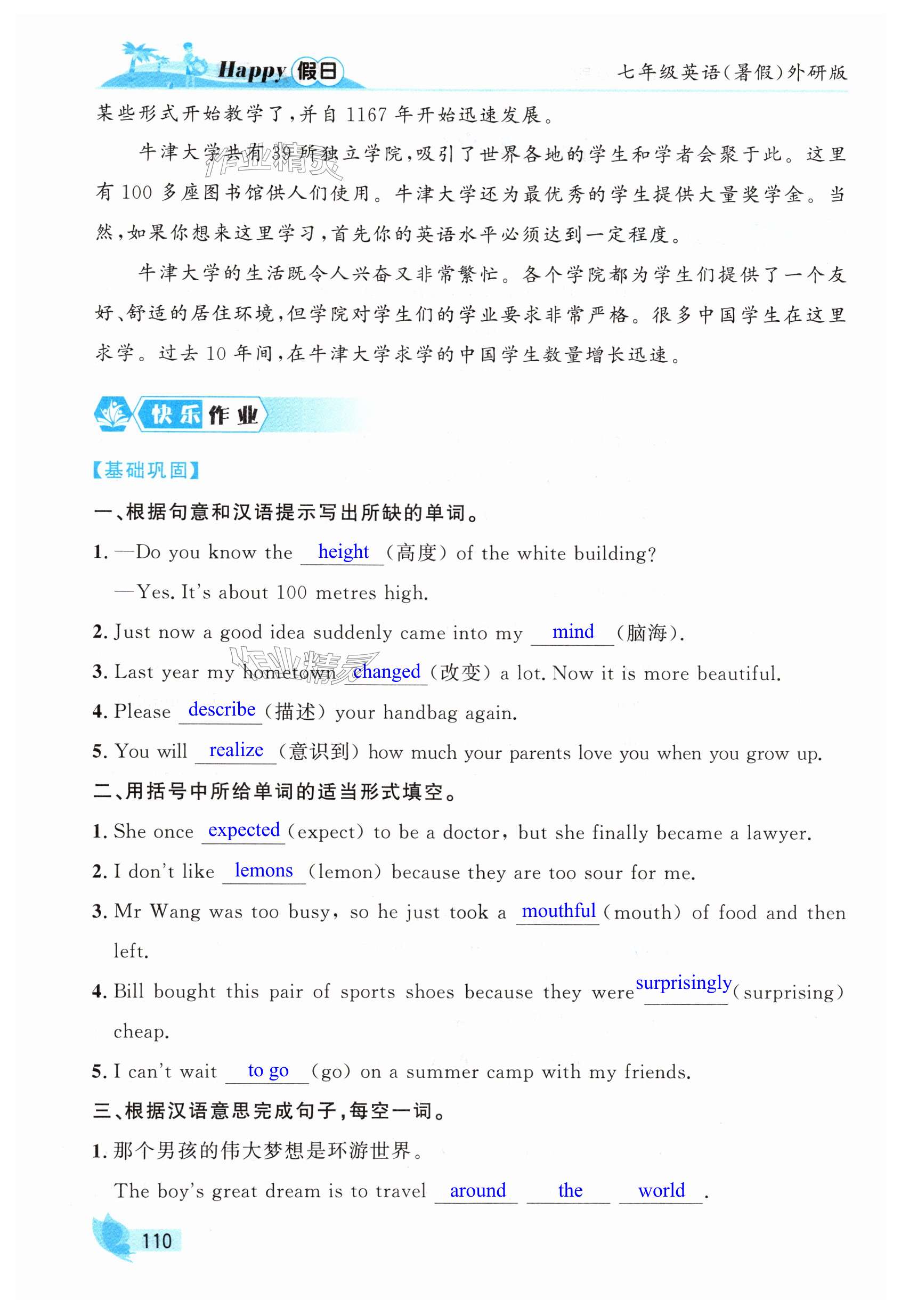 注:目前有些书本章节名称可能整理的还不是很完善,但都是按照顺序排列的,请同学们按照顺序仔细查找。练习册 2025年暑假Happy假日七年级英语全一册外研版 答案主要是用来给同学们做完题方便对答案用的,请勿直接抄袭。