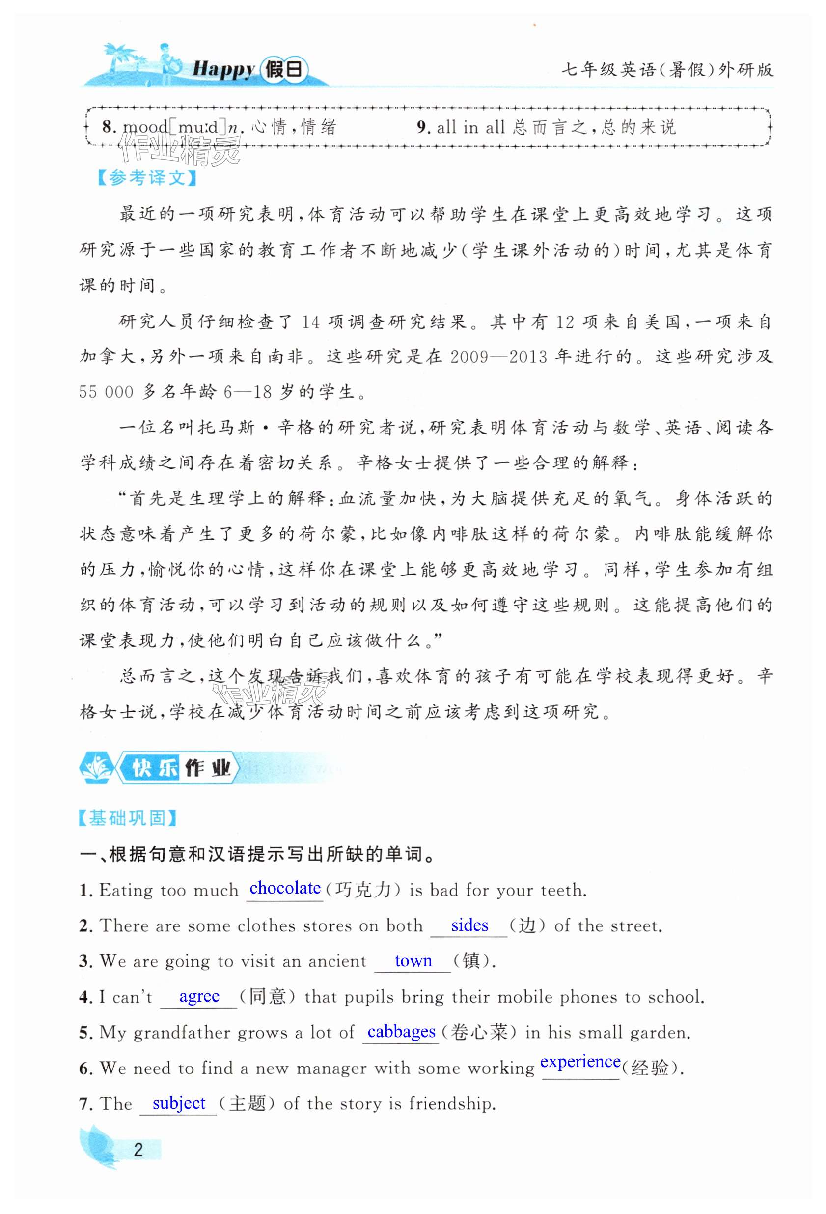 注:目前有些书本章节名称可能整理的还不是很完善,但都是按照顺序排列的,请同学们按照顺序仔细查找。练习册 2025年暑假Happy假日七年级英语全一册外研版 答案主要是用来给同学们做完题方便对答案用的,请勿直接抄袭。