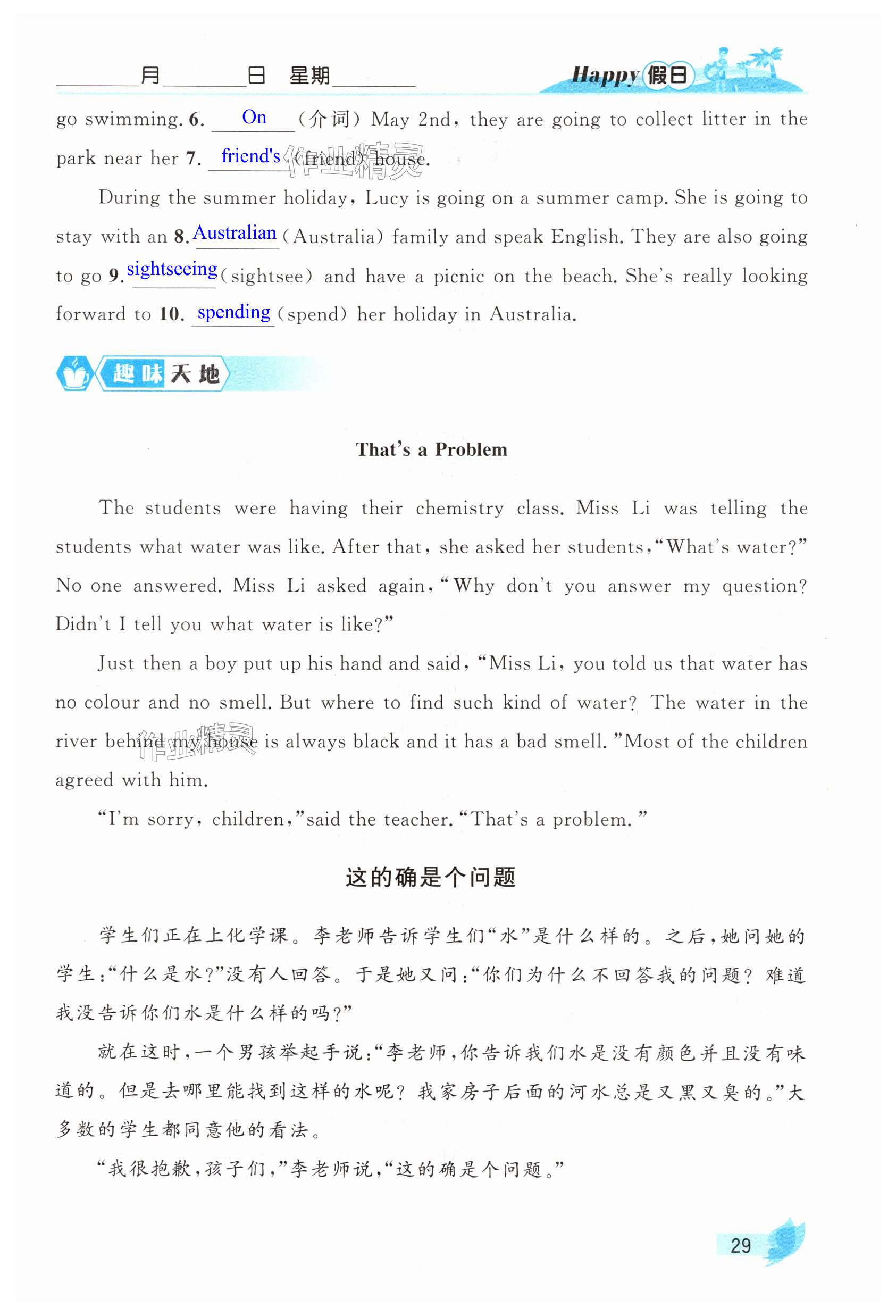 注:目前有些书本章节名称可能整理的还不是很完善,但都是按照顺序排列的,请同学们按照顺序仔细查找。练习册 2025年暑假Happy假日七年级英语全一册外研版 答案主要是用来给同学们做完题方便对答案用的,请勿直接抄袭。