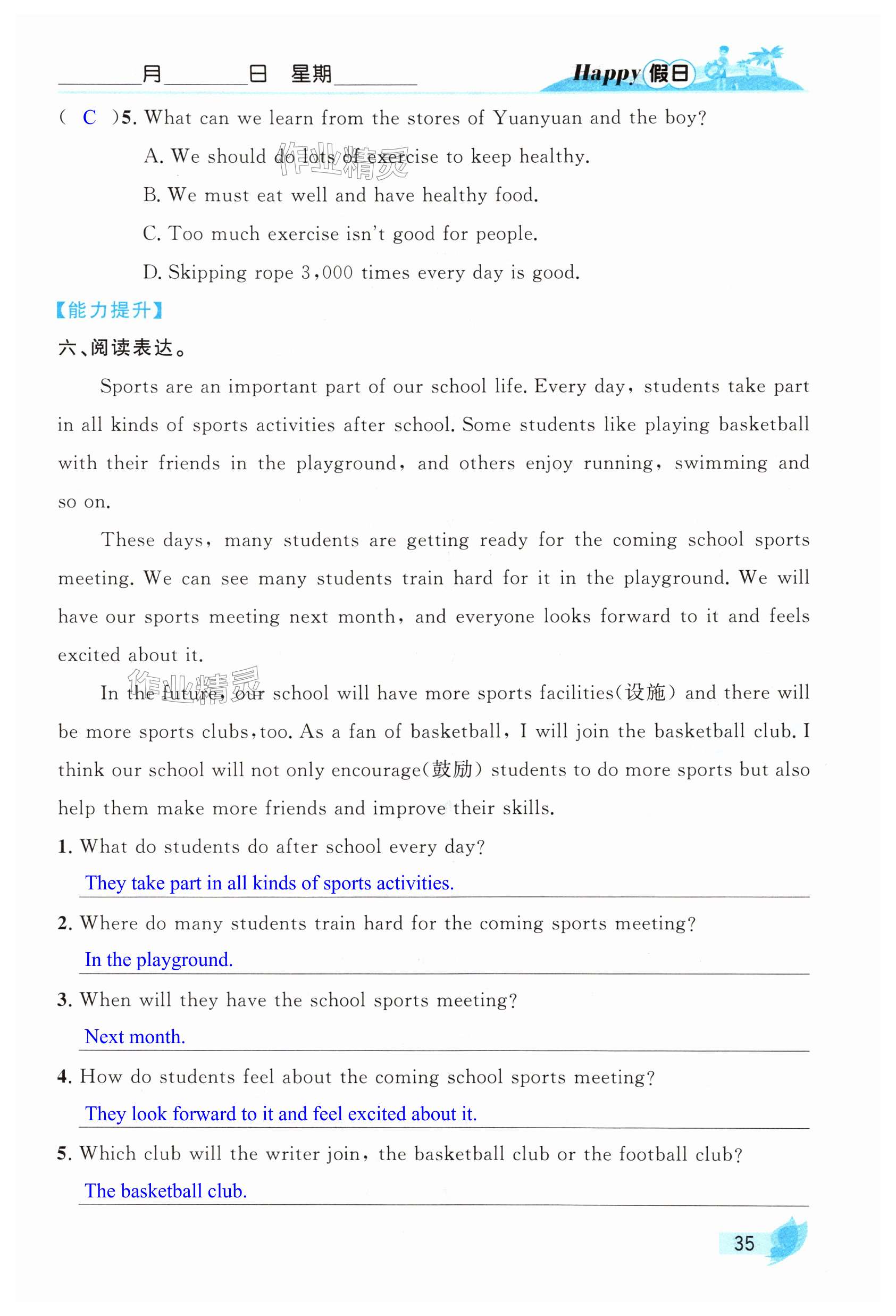 注:目前有些书本章节名称可能整理的还不是很完善,但都是按照顺序排列的,请同学们按照顺序仔细查找。练习册 2025年暑假Happy假日七年级英语全一册外研版 答案主要是用来给同学们做完题方便对答案用的,请勿直接抄袭。