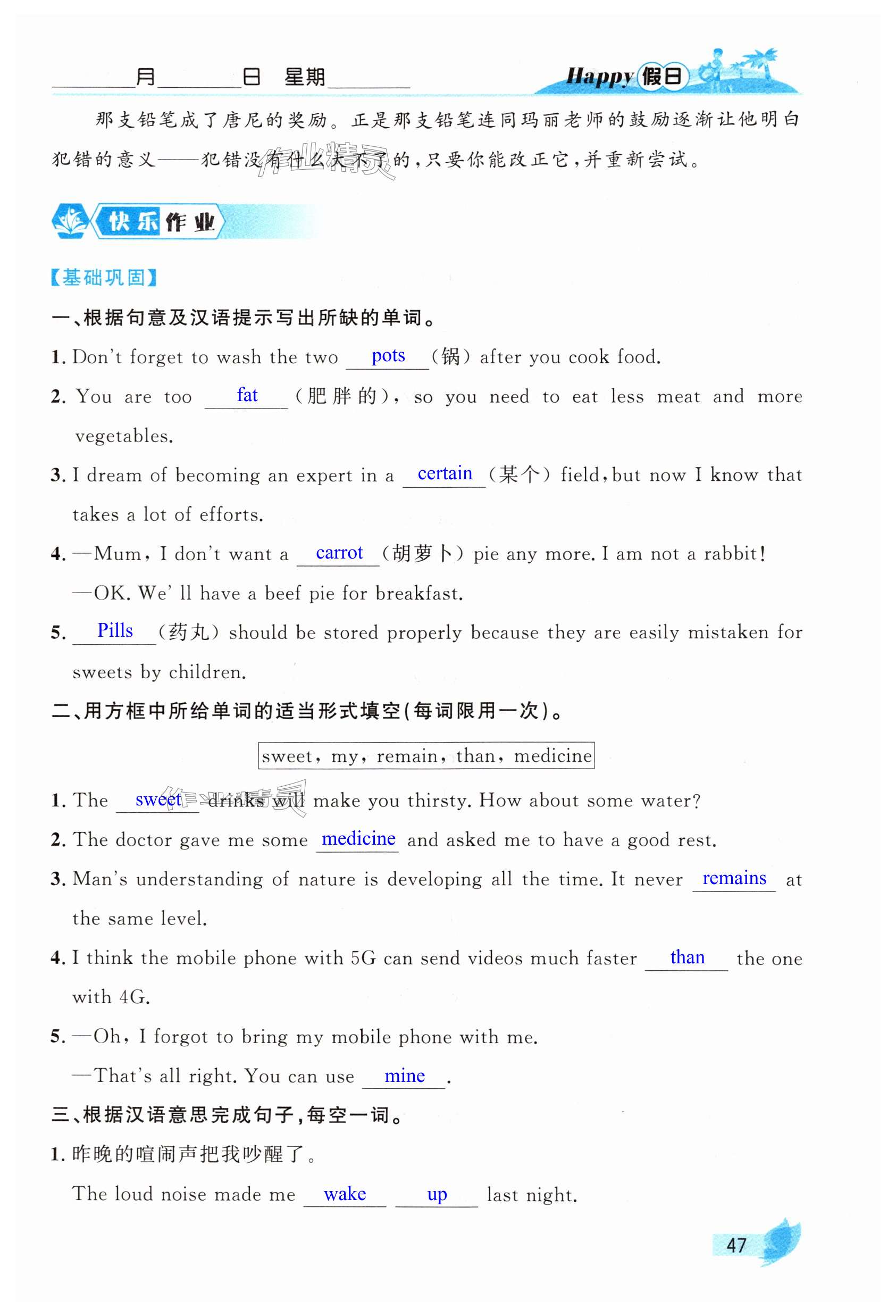注:目前有些书本章节名称可能整理的还不是很完善,但都是按照顺序排列的,请同学们按照顺序仔细查找。练习册 2025年暑假Happy假日七年级英语全一册外研版 答案主要是用来给同学们做完题方便对答案用的,请勿直接抄袭。