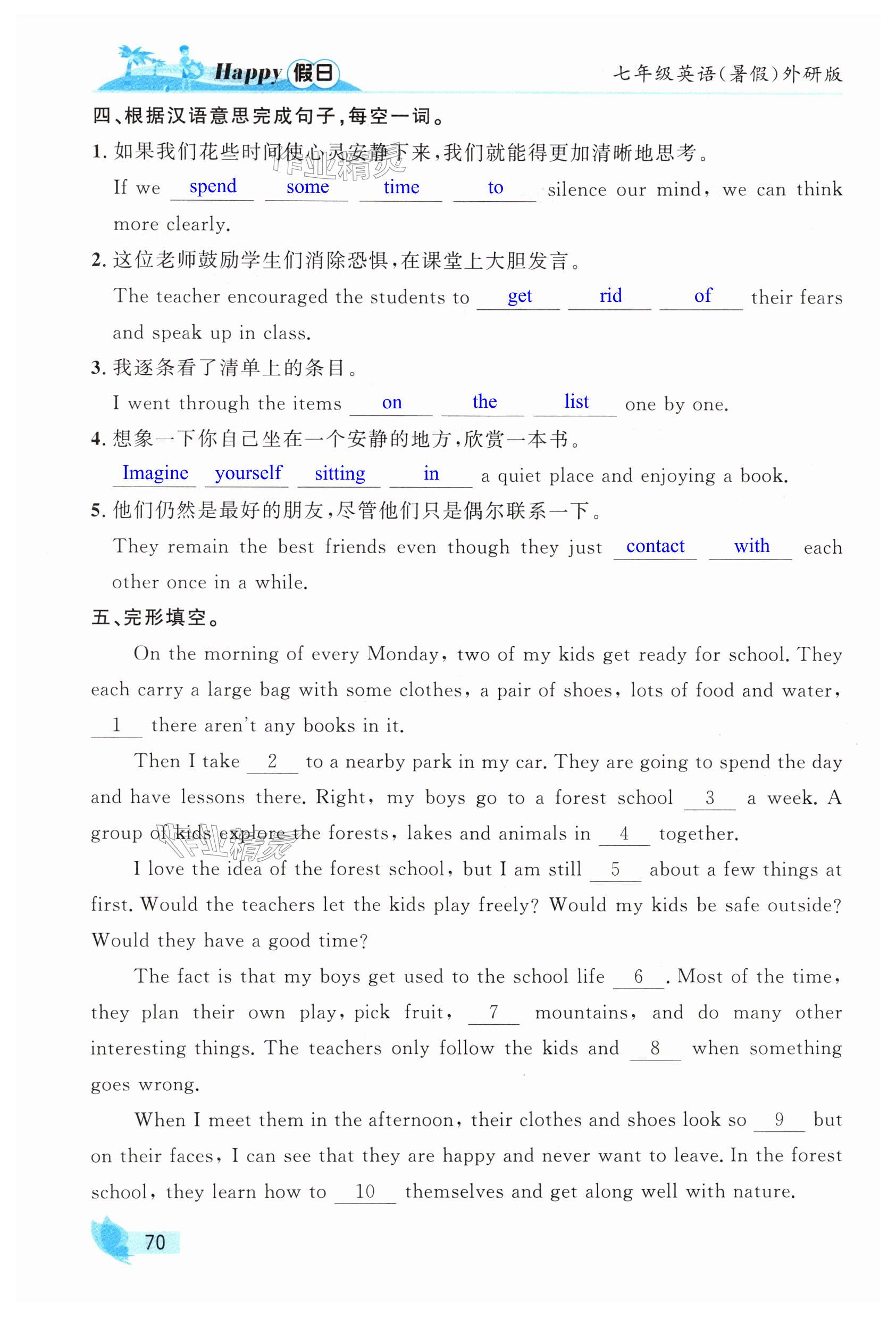 注:目前有些书本章节名称可能整理的还不是很完善,但都是按照顺序排列的,请同学们按照顺序仔细查找。练习册 2025年暑假Happy假日七年级英语全一册外研版 答案主要是用来给同学们做完题方便对答案用的,请勿直接抄袭。