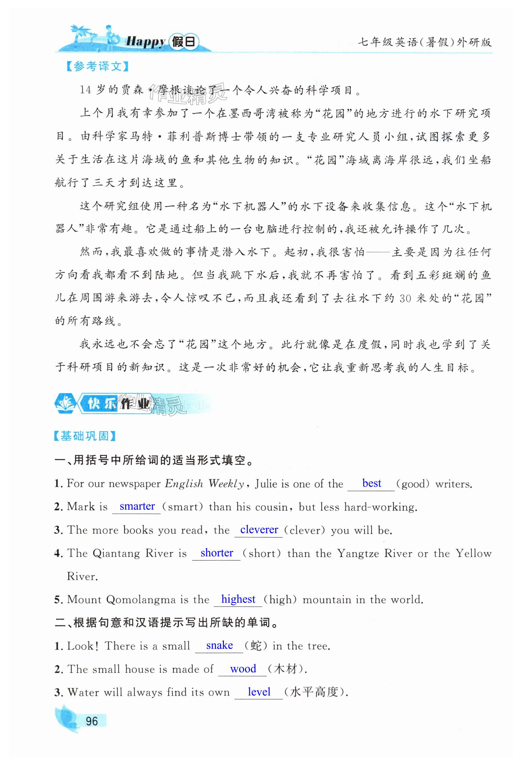 注:目前有些书本章节名称可能整理的还不是很完善,但都是按照顺序排列的,请同学们按照顺序仔细查找。练习册 2025年暑假Happy假日七年级英语全一册外研版 答案主要是用来给同学们做完题方便对答案用的,请勿直接抄袭。