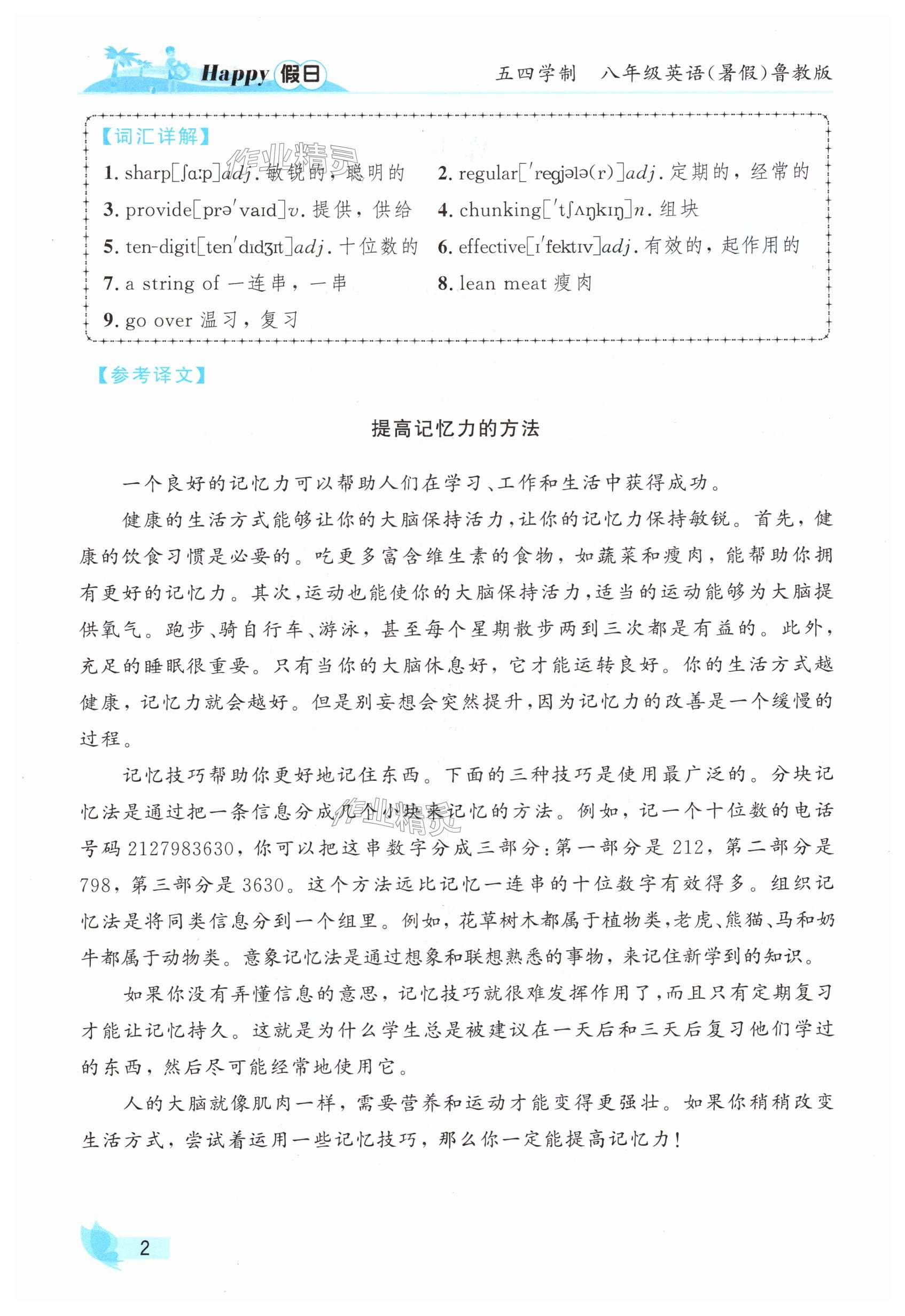 2025年暑假Happy假日八年级英语鲁教版五四制