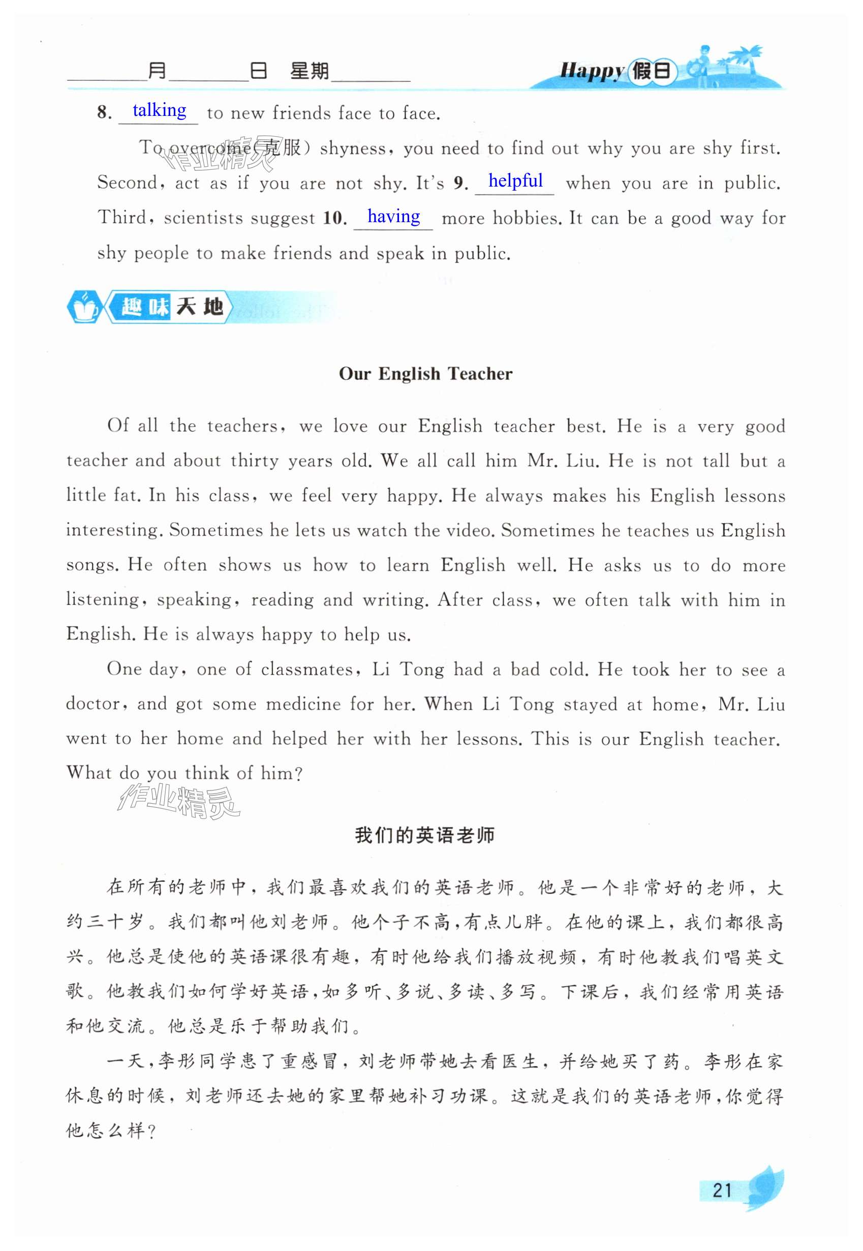 注:目前有些书本章节名称可能整理的还不是很完善,但都是按照顺序排列的,请同学们按照顺序仔细查找。练习册 2025年暑假Happy假日八年级英语鲁教版五四制 答案主要是用来给同学们做完题方便对答案用的,请勿直接抄袭。
