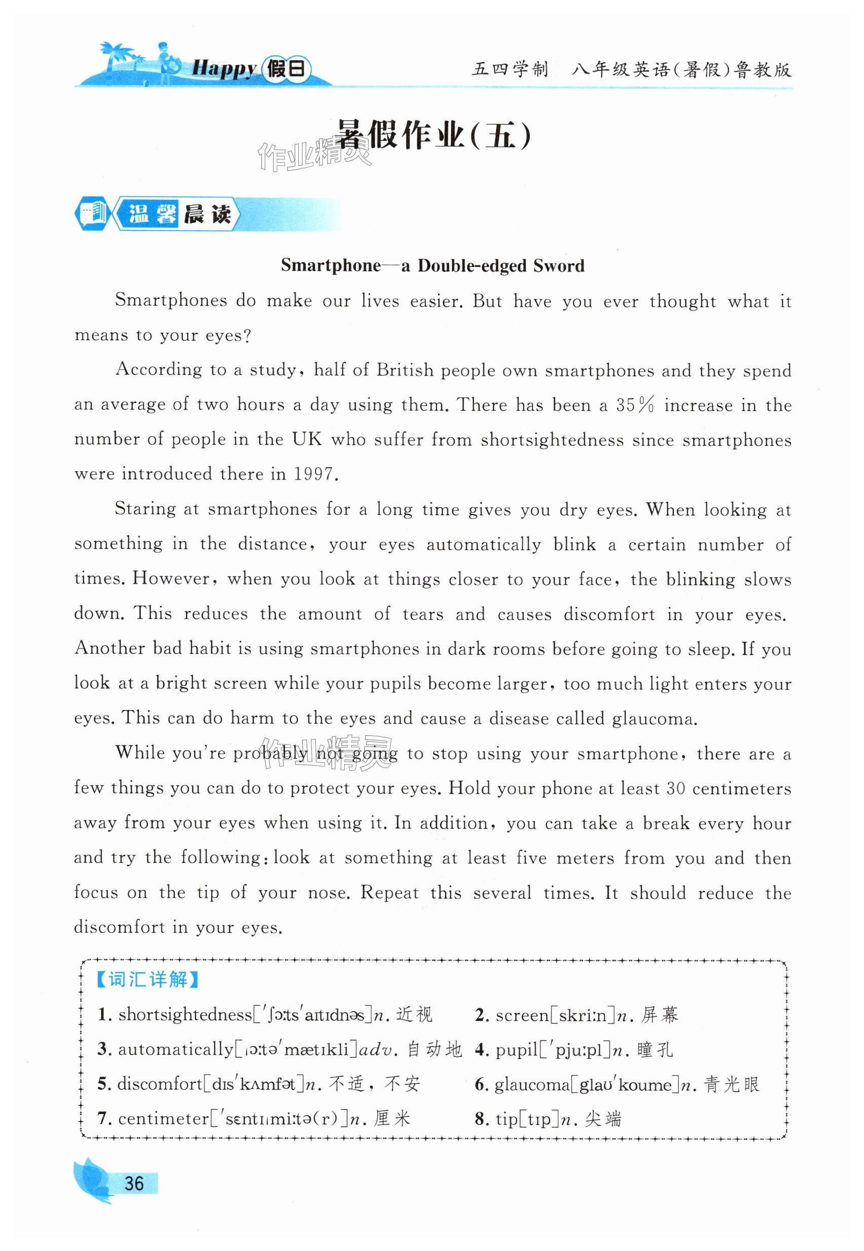2025年暑假Happy假日八年级英语鲁教版五四制