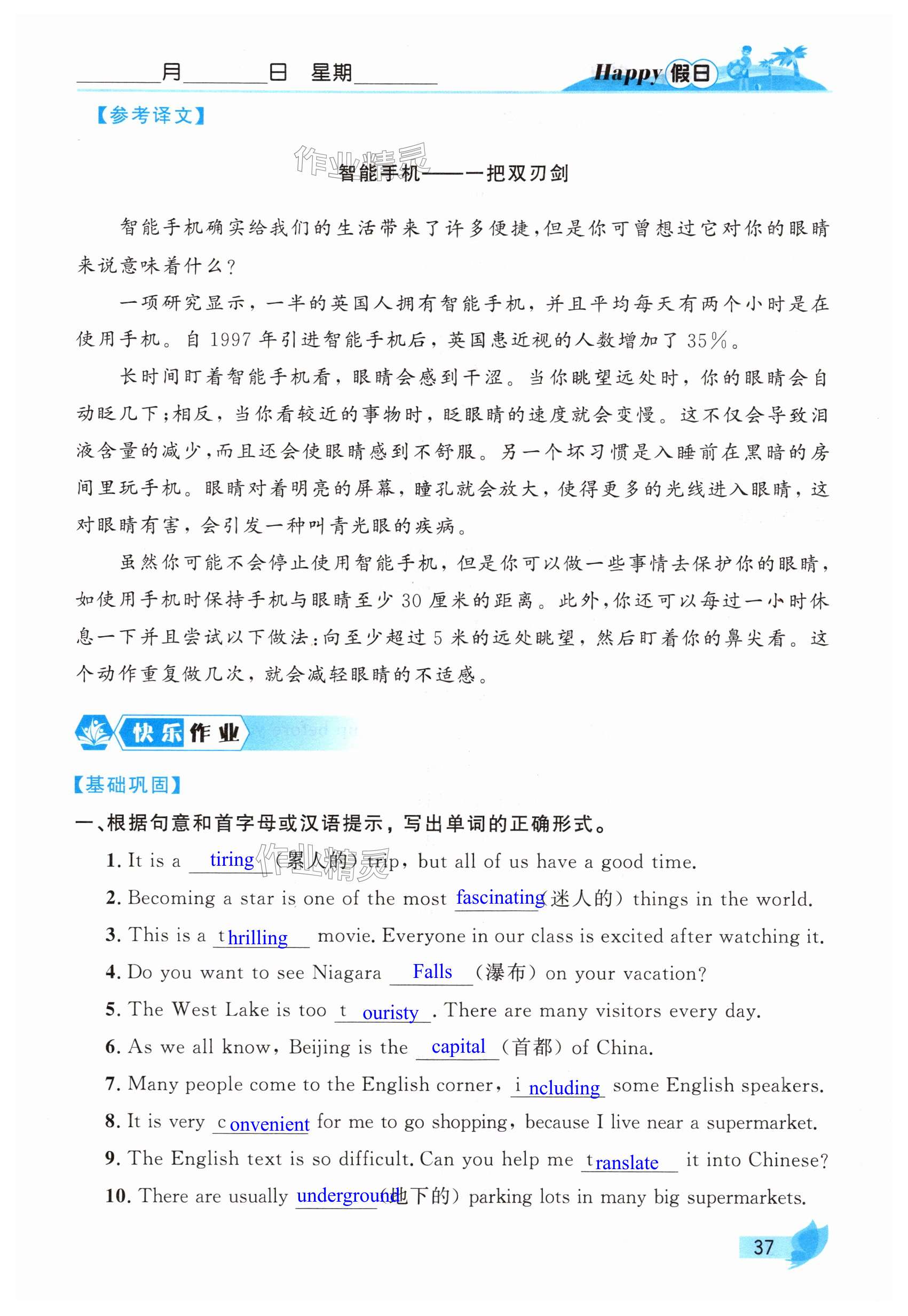 注:目前有些书本章节名称可能整理的还不是很完善,但都是按照顺序排列的,请同学们按照顺序仔细查找。练习册 2025年暑假Happy假日八年级英语鲁教版五四制 答案主要是用来给同学们做完题方便对答案用的,请勿直接抄袭。