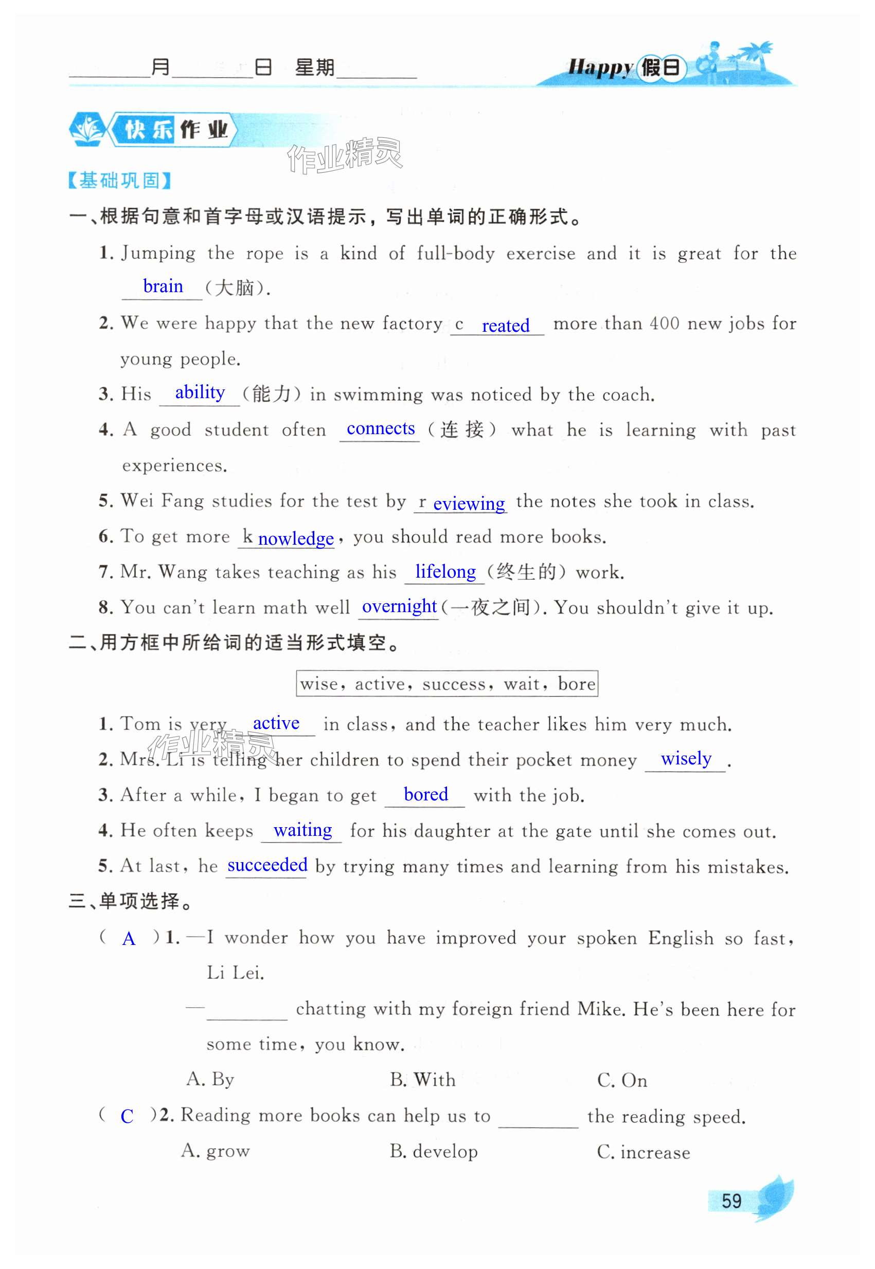 注:目前有些书本章节名称可能整理的还不是很完善,但都是按照顺序排列的,请同学们按照顺序仔细查找。练习册 2025年暑假Happy假日八年级英语鲁教版五四制 答案主要是用来给同学们做完题方便对答案用的,请勿直接抄袭。