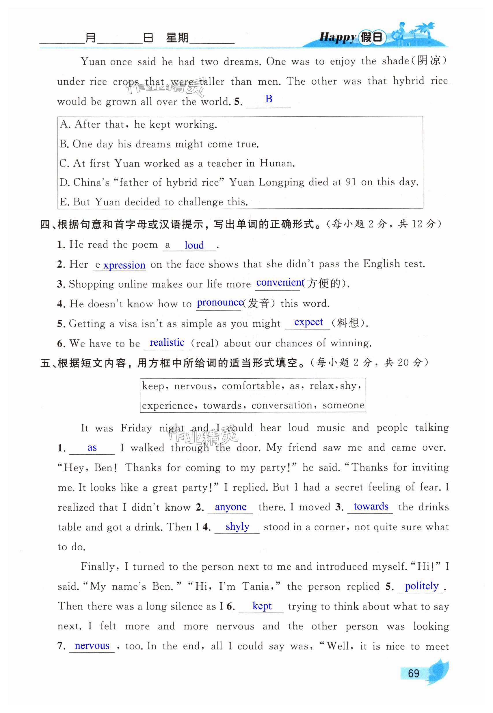 注:目前有些书本章节名称可能整理的还不是很完善,但都是按照顺序排列的,请同学们按照顺序仔细查找。练习册 2025年暑假Happy假日八年级英语鲁教版五四制 答案主要是用来给同学们做完题方便对答案用的,请勿直接抄袭。