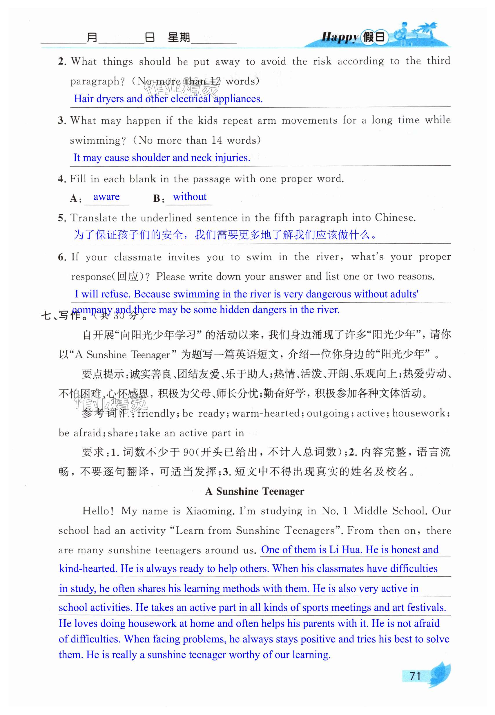 注:目前有些书本章节名称可能整理的还不是很完善,但都是按照顺序排列的,请同学们按照顺序仔细查找。练习册 2025年暑假Happy假日八年级英语鲁教版五四制 答案主要是用来给同学们做完题方便对答案用的,请勿直接抄袭。