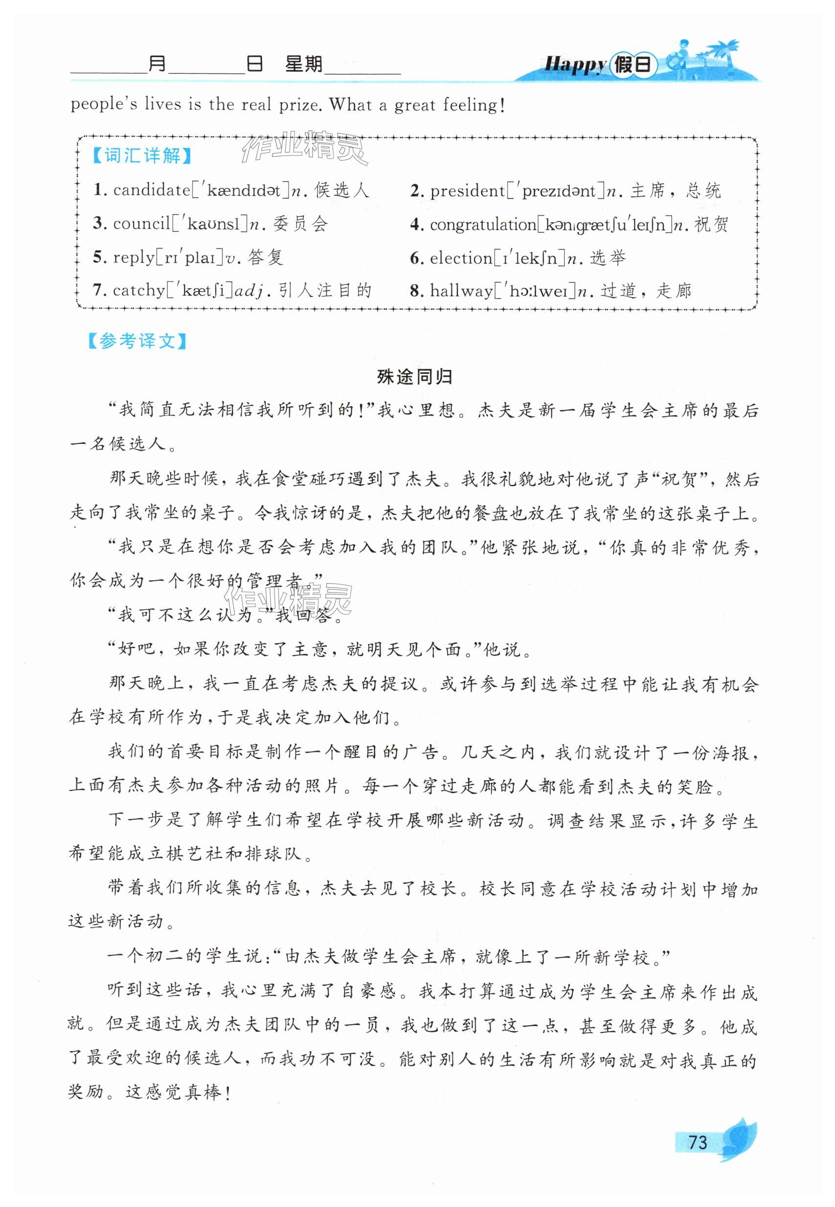 2025年暑假Happy假日八年级英语鲁教版五四制