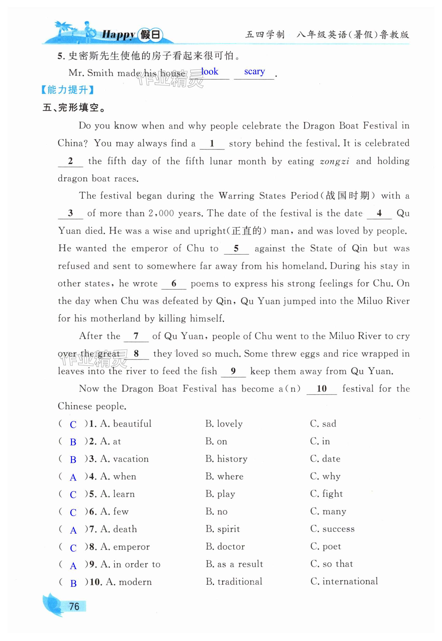 注:目前有些书本章节名称可能整理的还不是很完善,但都是按照顺序排列的,请同学们按照顺序仔细查找。练习册 2025年暑假Happy假日八年级英语鲁教版五四制 答案主要是用来给同学们做完题方便对答案用的,请勿直接抄袭。