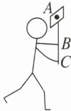 7. 如图所示,小敏在运动会上竖直举着班牌匀速前进,前进时班牌遇到水平向后风的阻力等效作用在A点上。若将班牌视为杠杆,选______(选填“B”或“C”)点作为支点,人的另一只手对杆的水平作用力较小,这个力的方向是______(选填“水平向前”或“水平向后”)。
