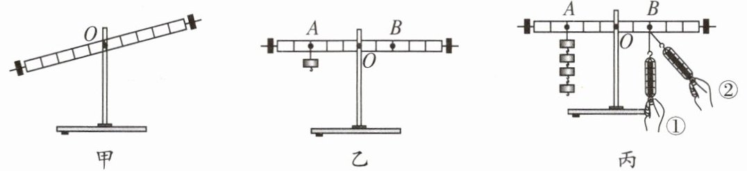 (5)如图丙所示,若不在B点挂钩码,改成用弹簧测力计在B点向下拉杠杆,使杠杆仍在水平位置平衡,当测力计从①位置转动到②位置时,其示数大小将______(填“变大”“变小”或“不变”),原因是______。