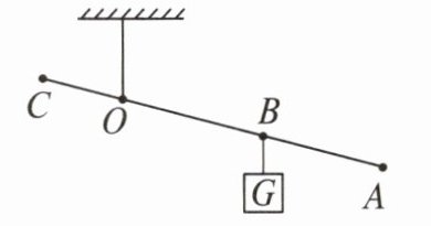 12. 悬挂重物G的轻质杠杆,在力的作用下倾斜静止在如图所示的位置。若力施加在A点,最小的力为$F_A;$若力施加在B点或C点,最小的力分别为$F_B、$$F_C,$且AB=BO=OC。下列判断正确的是$ ( )A. F_A>GB. F_B=GC. F_C$<G
