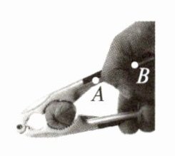 9. 用如图所示的核桃夹夹核桃,在A点用力$F_A$或在B点用力$F_B$捏核桃夹时,核桃上表面受到的压力大小均为F,则$ ( )A. F>F_A>F_BB. F_A>F>F_BC. F_B>F_A>FD. F_A>F_B>F$