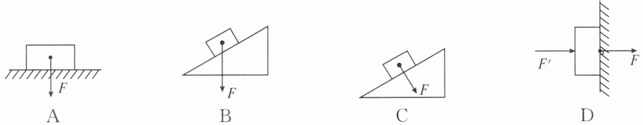 2. 在下列各图中,能正确表示物体对支撑面压力的是 ( )