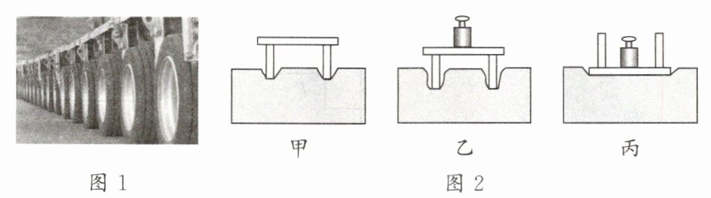 16. 如图1,平板货车有很多轮子。为了探究其原因,小艺利用海绵、小桌和砝码进行模拟实验,在图2中,他应选择的对比研究是 ( )