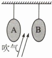 5. 如图所示,将两个气球用细线悬挂起来。当用力向两个气球中间吹气时,会发生的现象是 ( )