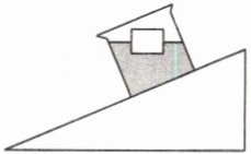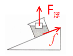 15. 一个物体漂浮在液面上,请在图中画出物体受到的浮力$F_{浮}$和烧杯受到的摩擦力f的示意图。(摩擦力画在烧杯和斜面的接触面上)