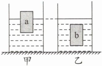 12. (多选)如图所示,盛有不同液体的甲、乙两个相同容器放在水平桌面上,完全相同的 a、b 两个物体静止在液体中,此时两容器的液面相平,甲、乙容器底部受到液体的压强分别为$p_{甲}$、$p_{乙}$;a、b 两个物体受到的浮力分别为$F_{甲}$、$F_{乙}$,则 ( )