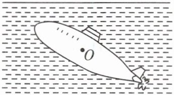 【解析】:潜水艇在海水中,浮力方向竖直向上,重力方向竖直向下,过重心$O$分别作竖直向上的浮力$F_{浮}$和竖直向下的重力$G$的示意图。因为潜水艇在海水中演练,可认为其处于平衡状态(悬浮),所以浮力与重力大小相等,线段长度相等。