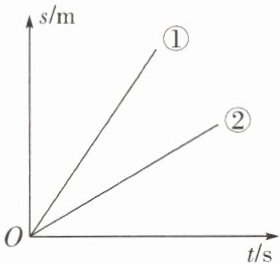 5. 用测力计沿水平方向两次拉着同一物体在同一水平面上运动,两次运动的$s-t$图像如图所示,其对应的测力计示数分别为$F_{1}$和$F_{2}$,功率分别为$P_{1}$和$P_{2}$,则它们大小关系正确的是 ( )