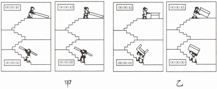 6. 无论是人做功,还是利用机械做功,都有做功快与慢的问题。如图甲、乙所示,两名同学均从一楼搬运物体到三楼。