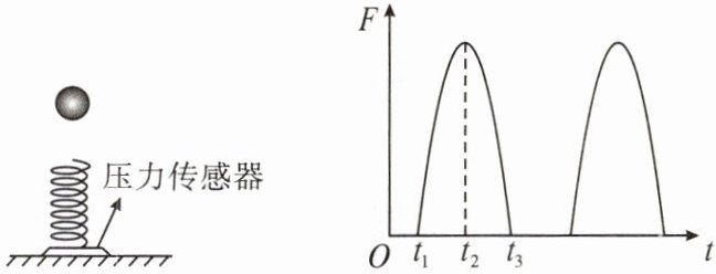 15. 如图所示,质量不计的弹簧竖直固定在水平面上,$t = 0$时刻,将一金属小球从弹簧正上方某一高度处由静止释放,小球接触弹簧并将弹簧压缩至最低点(形变在弹性限度内),然后又被弹起离开弹簧,上升到一定高度后又下落,如此反复。通过安装在弹簧下端的压力传感器,测出该过程中弹簧弹力$F$随时间$t$变化的图像如图所示,不计空气阻力。