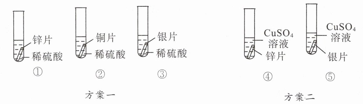 6. 为了探究Zn、Cu、Ag三种金属的活动性顺序,某同学设计了如图两种方案。
