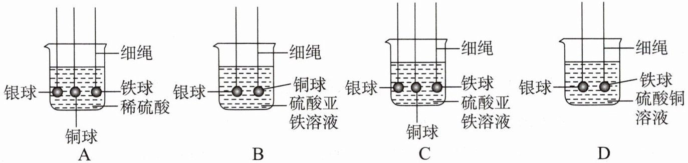 2. 通过实验可以比较铁、铜、银三种金属的活动性强弱。下列装置能够达到实验目的的是 (