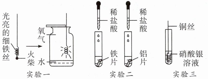 (2) 铁与稀盐酸反应生成氯化亚铁和氢气,铝与稀盐酸反应生成氯化铝和氢气,两个反应均生成了氢气;比较铁和铝的金属活动性强弱,从试剂角度需考虑:①加入同样大小的铁片和铝片;②加入等浓度、等体积的稀盐酸。