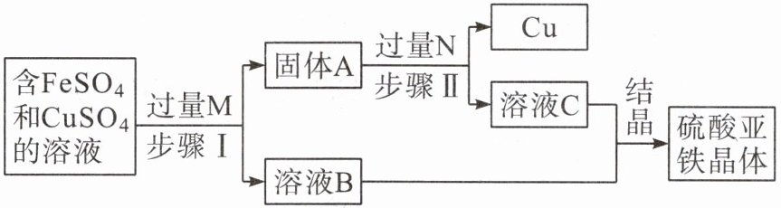 (3)铜的回收:某工厂的废水经预处理后得到含$ FeSO_4 $和$ CuSO_4 $的溶液。为了减少污染并促进废物利用,工厂设计以下流程回收Cu和$ FeSO_4 $。