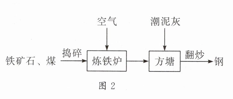 8. 我国有着悠久的钢铁冶炼史,《天工开物》中记载的“炒钢法”如图1,该方法的生产过程可用图2表示。