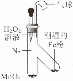 12. 实验小组用如图装置探究铁锈蚀的条件,开始时装置内充满氮气,一周后无明显现象。挤压胶头滴管,再次放置一周,观察到右侧管中的铁粉中出现红棕色固体。下列说法正确的是 (