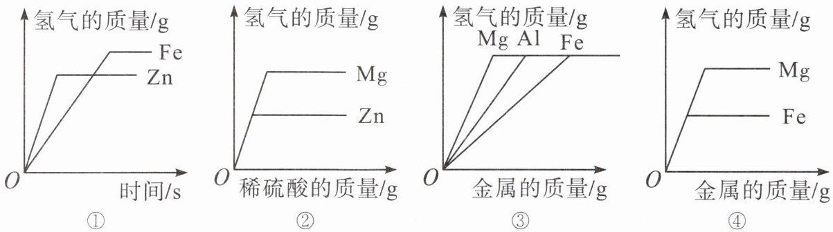 A. ①表示向等质量、等浓度的稀硫酸中分别加入足量的锌、铁