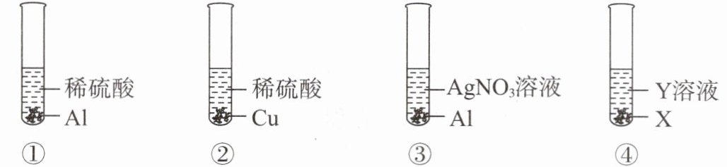 C. 若要用实验④证明金属活动性:${Al>Cu}$,X可以为Al,Y溶液为${CuSO_{4}}$溶液