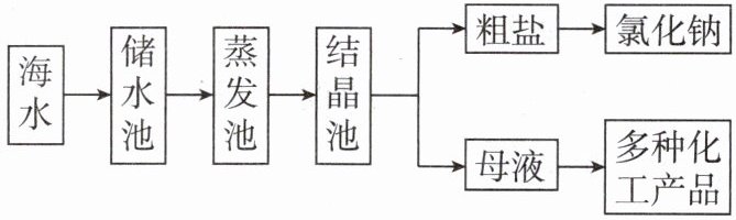 ①原理:利用风吹和日晒使水分蒸发,食盐从海水中结晶析出。