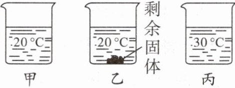 8. 向盛有等质量水的甲、乙、丙三个烧杯中分别加入 15 g、30 g、30 g 蔗糖固体,充分搅拌后静置,现象如图所示。下列说法正确的是(