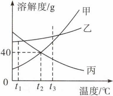b. 将甲、乙、丙三种物质$t_{2}^{\circ }C$时的饱和溶液升温至$t_{3}^{\circ }C$时,所得溶液的溶质质量分数由大到小的顺序是乙>甲=丙