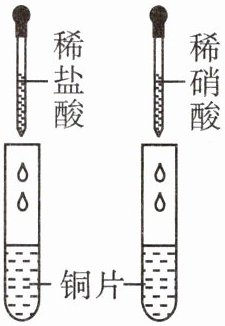 [拓展延伸]小张同学将Cu片分别放入两支试管中,并逐滴滴入稀盐酸和稀硝酸,发现滴入稀盐酸的试管中无明显现象;滴入稀硝酸的试管中Cu片逐渐溶解,溶液由无色变为蓝色并产生气泡,经验证,该气体不是氢气。