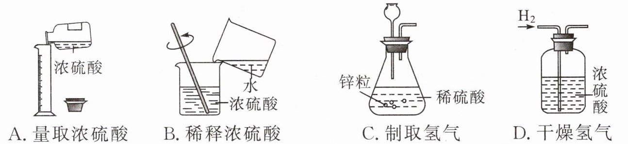 5. 在配制稀硫酸并制备氢气的实验中,下列装置和实验操作正确并规范的是 (