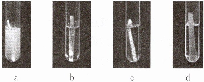 D. d试管中的现象是产生气泡,溶液变成蓝色