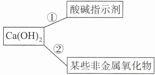5. 对知识进行归纳是学好化学的重要方法。在学习了碱的性质后,小红同学总结了氢氧化钙的两条化学性质(如图),即氢氧化钙与图中两类物质能够发生化学反应。