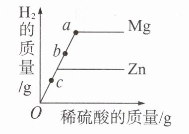 (2)c点时,锌与稀硫酸反应产生氢气的质量小于镁与稀硫酸反应产生氢气的质量,说明此时锌与稀硫酸恰好完全反应(或此时镁有剩余等合理答案均可)。