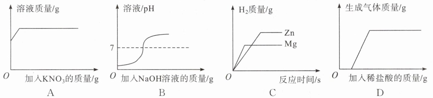)A. 向一定质量接近饱和的$ {KNO_{3}} $溶液中不断加入$ {KNO_{3}} $固体