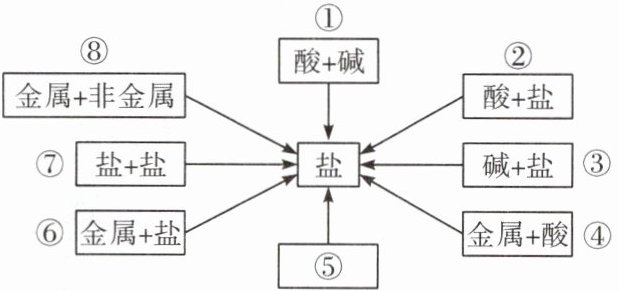 16. (5分)学习了单质、氧化物、酸、碱、盐的性质后,发现有很多不同类别的物质在发生反应时都有盐生成(其他物质省略),如图所示。请回答: