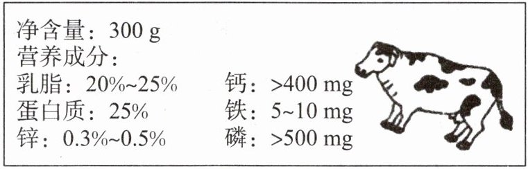 9. 如图是某奶粉包装袋上的部分文字说明。